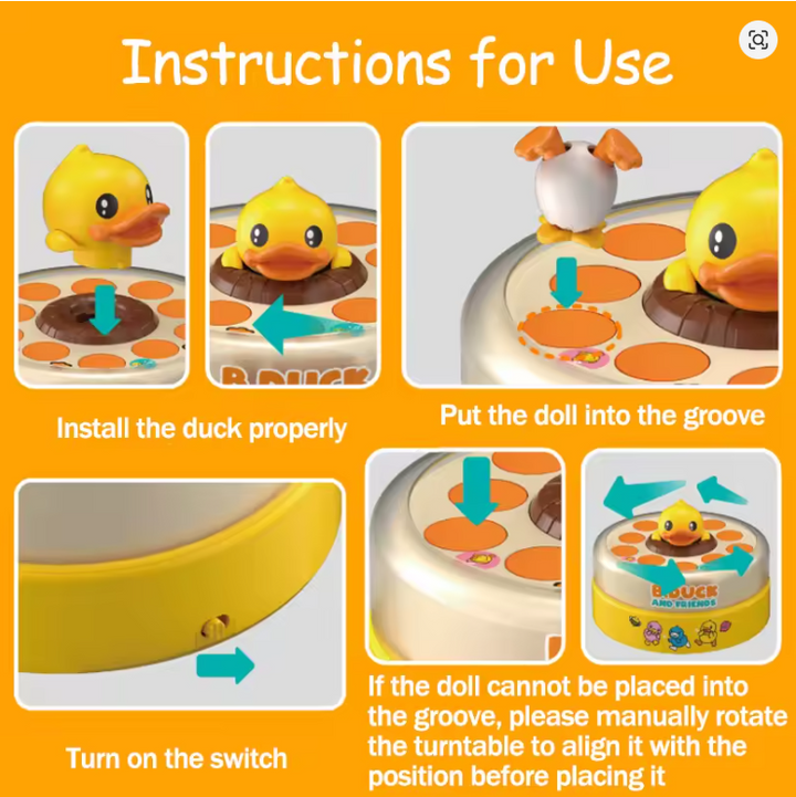 Electronic & Rotating: The turntable rotates and launches the ducks with electronic motion, adding to the thrill.